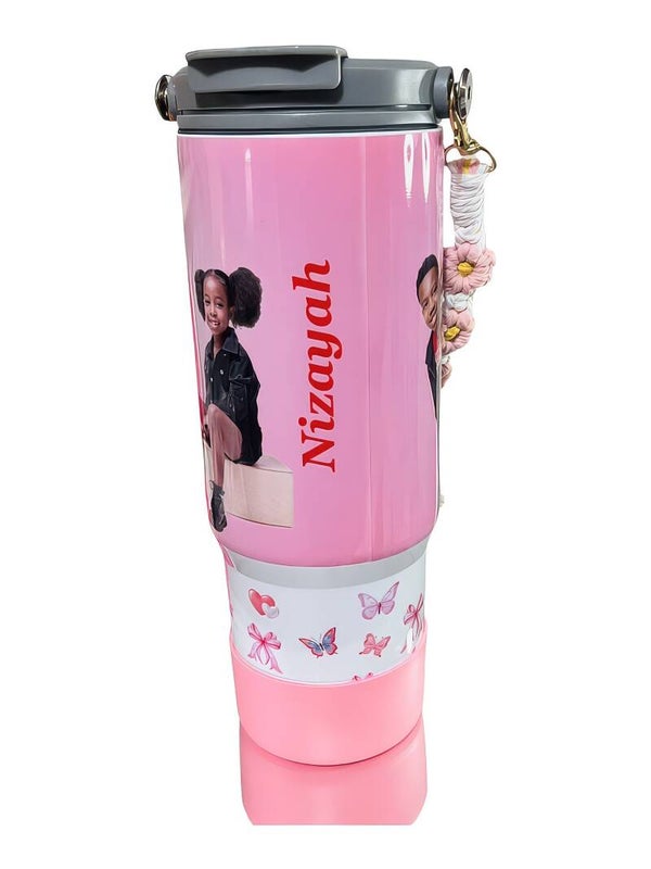 This adorable 30oz personalized tumbler from the Nizayah Edition is the perfect gift for your little one! Featuring your child’s photo, name, and a cute pink floral strap, it’s both stylish and practical. Designed with love, this tumbler keeps drinks hot or cold for hours — ideal for school, travel, or everyday adventures. Add a personal touch and make every sip special!